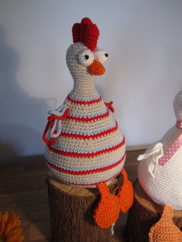 Die Anleitung ist leicht verständlich geschrieben und mit vielen Bildern. Die Henne ist schnell gehäkelt, nur für das aufnähen braucht man etwas Geduld. Gehäkelt werden nur feste Maschen und Luftmaschen. Die Anleitung ist somit auch für Anfänger bestens geeignet.