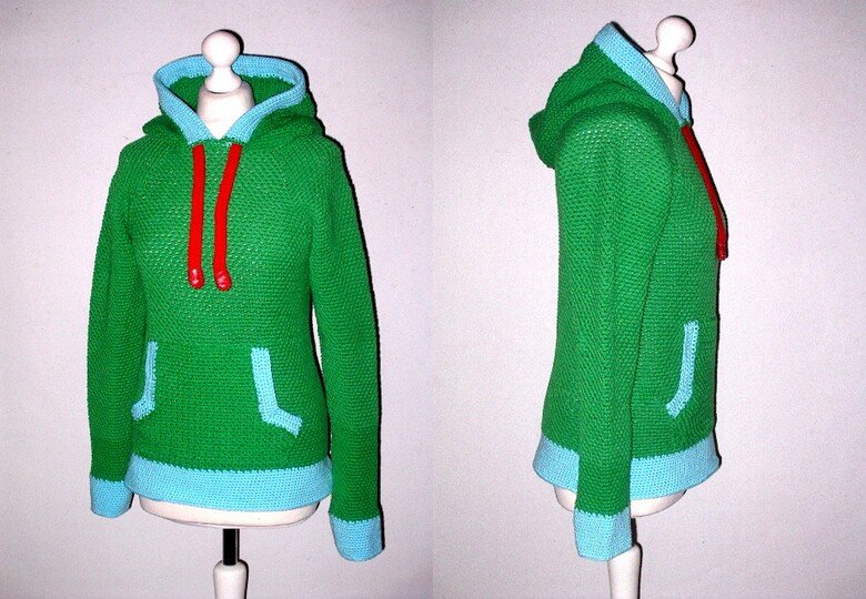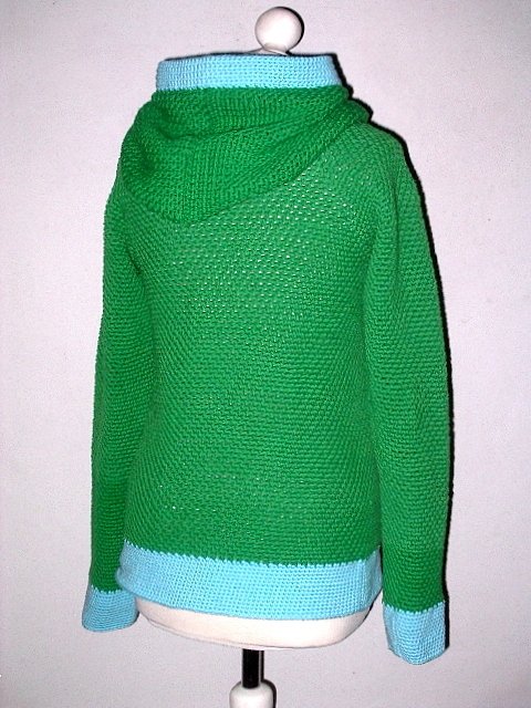 Ich bin etwas erstaunt über Ihre Nachricht, der Pullover war eine Auftragsarbeit, die ich gleich genutzt habe, um eine Anleitung zu schreiben. Ich habe es nicht so mit Ideenklau, da ich selbst recht kreativ bin! Diesen Raglanschnitt hat meine Oma schon gehäkelt, den hat wohl keiner von uns beiden erfunden? Und der dominante Teil meines Pullis ist ja eher die Kapuze, darum ging es bei dem Auftrag, ein Hoodie eben, wie es ähnliche schon tausendfach gibt... Ich besitze eines aus Frottee, das war auch Vorbild für meine Anleitung.