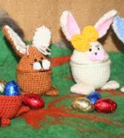 Wenn Sie mittelstarke Wolle für Nadelstärke 3, z.B. Lisa, verwenden, passt ein Hühnerei in Ihr Häschen.