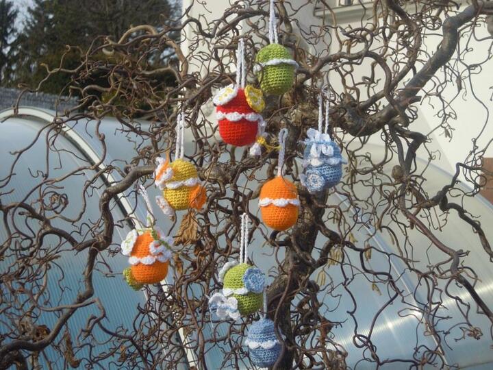 In dieser Häkelanleitung beschreibe ich detailliert mit vielen Bildern den Weg bis zu den fertigen Eiern, Schmetterlingen und Blüten.