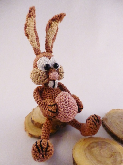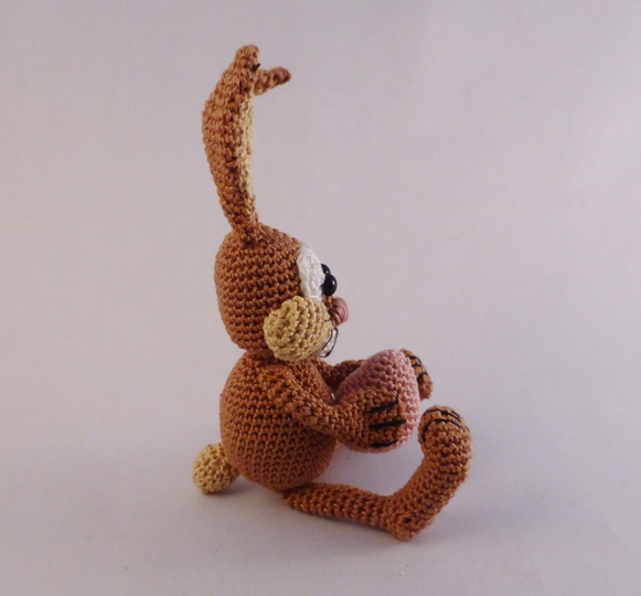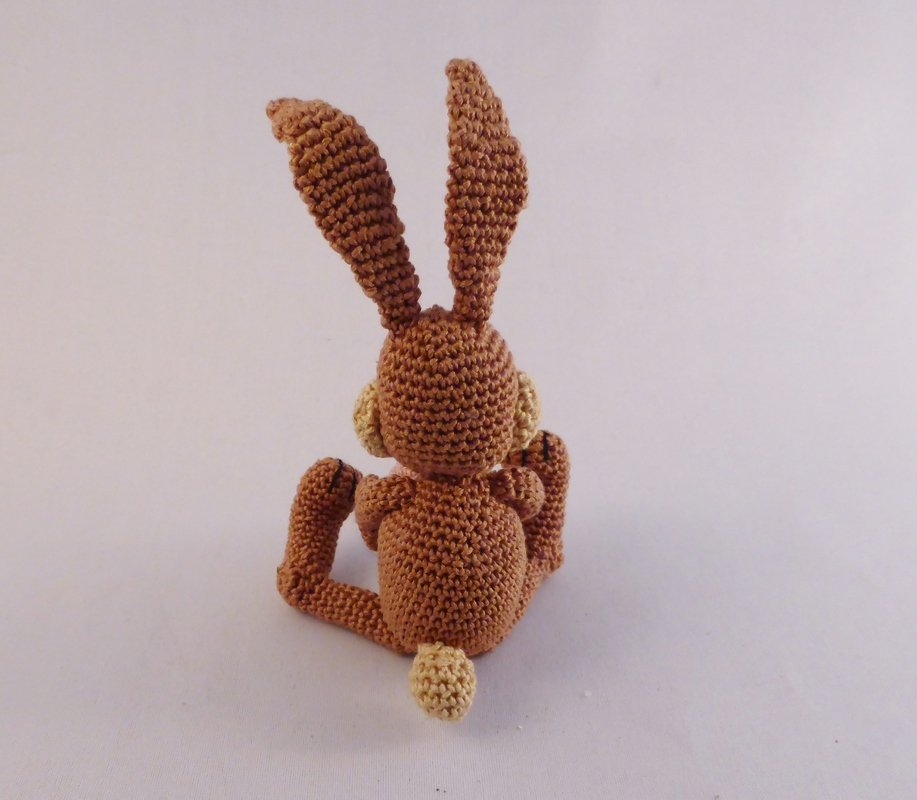 Mit einer 2,0 Häkelnadel (wie in der Anleitung) werden die Osterhasen ca. 16 cm hoch.