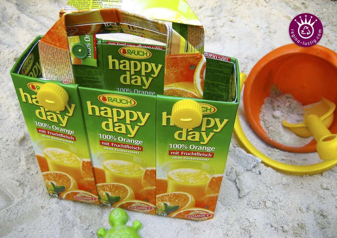 Manche Saftpackungen riechen nach der Reinigung noch leicht fruchtig, leider verflüchtigt sich der Duft nach ein paar Tagen. Und keine Angst bei Milchpackungen! Am besten schon beim Sammeln mehrmals gut ausspülen! Wenn Du allerdings immer einen Sitzplatz im Bus haben möchtest, kannst Du darauf auch verzichten. Eine meine Workshop-Teilnehmerinnen wollte absolut kein Risiko eingehen. Sie hat ihre super gereinigten Milchpackungen noch mit einem zarten Hauch von Lavendel parfümiert.