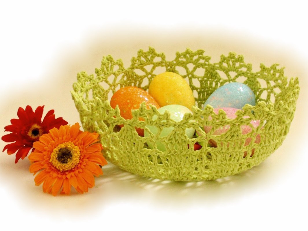 Dieses Osterkörbchen können Sie mit Ostergras auslegen und so wunderschöne Geschenkkörbe für Ostern zusammenstellen.