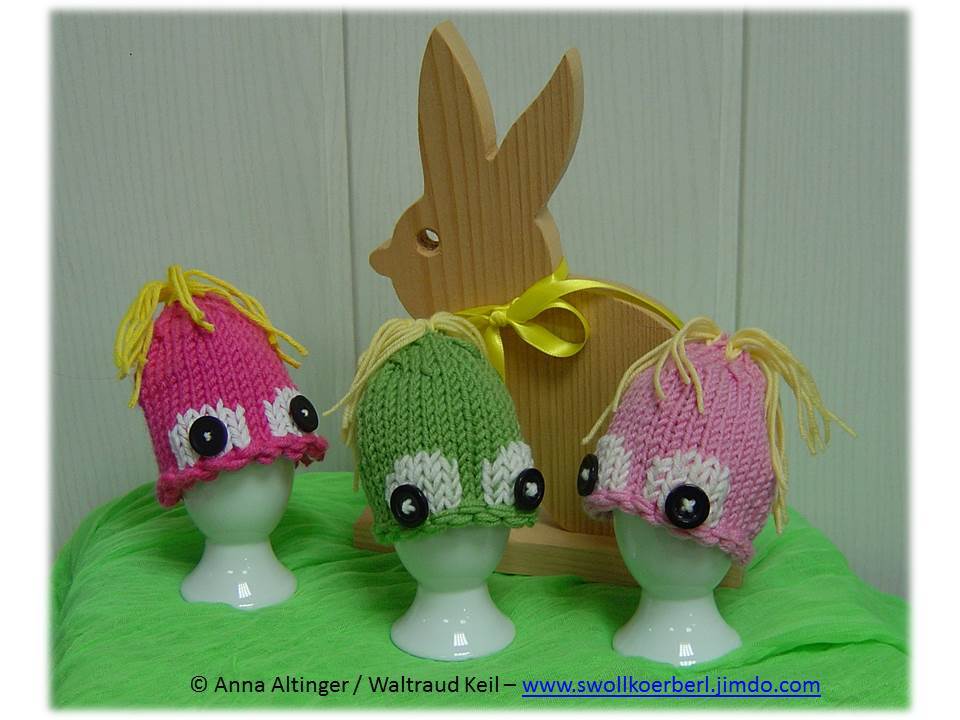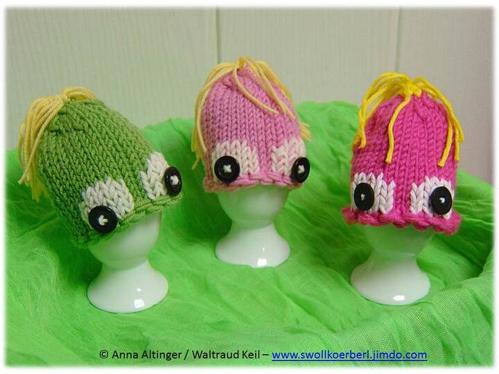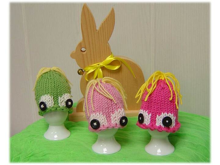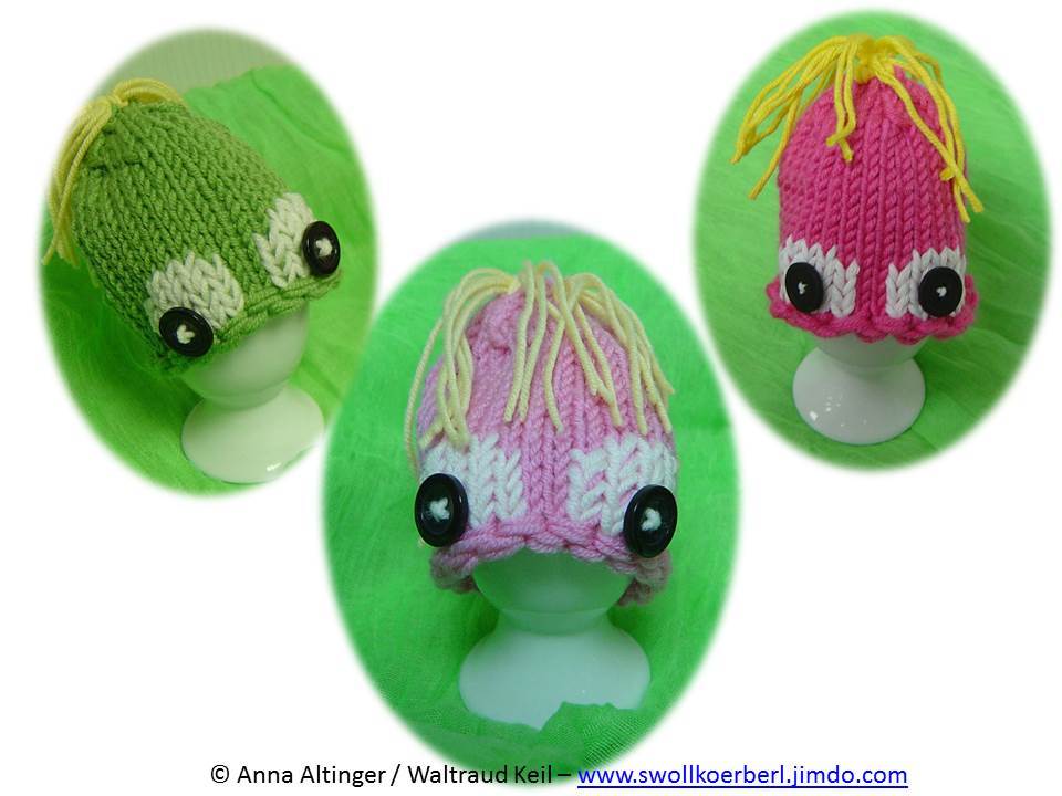 Lustige Eierwärmer nicht nur zu Ostern! Zudem eine ideale Wollreste-Verwertung.