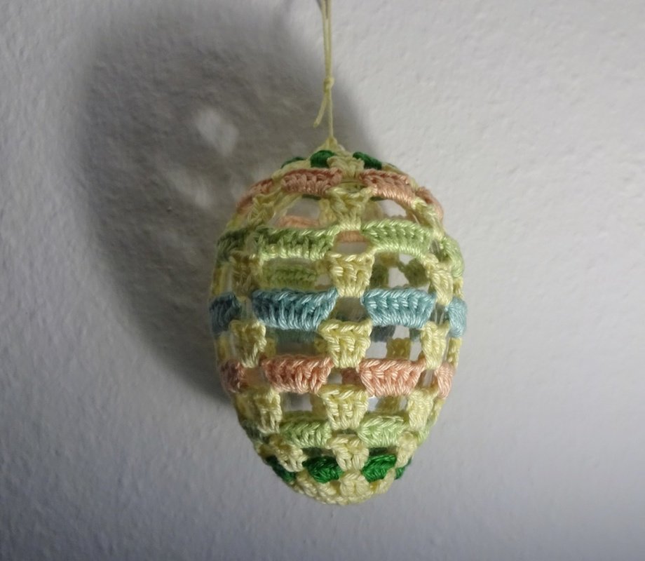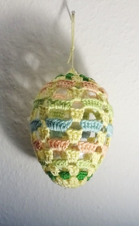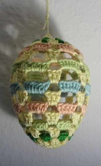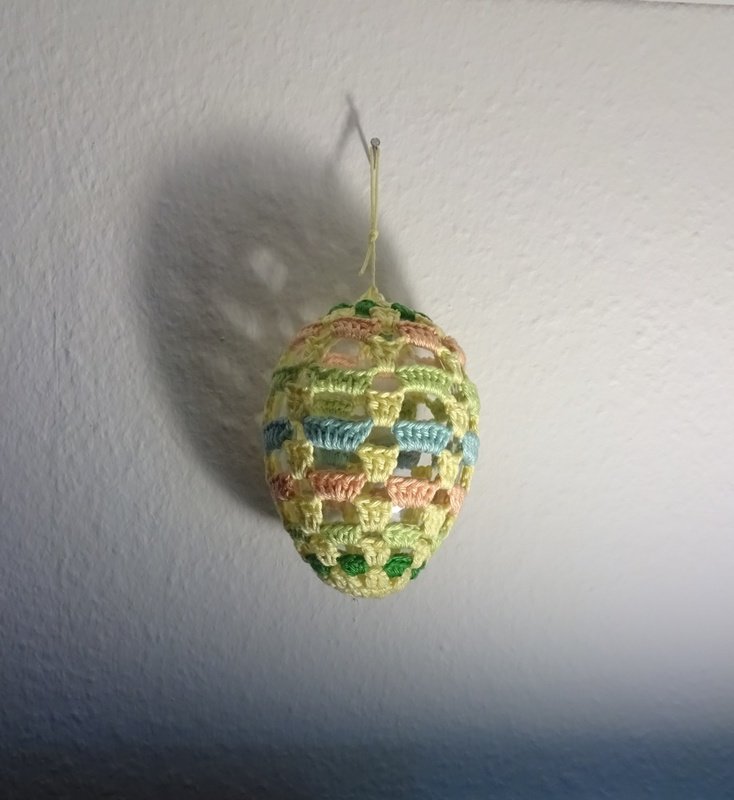 1 Acryl- Ei und Baumwoll- Reste in zarten Farben.