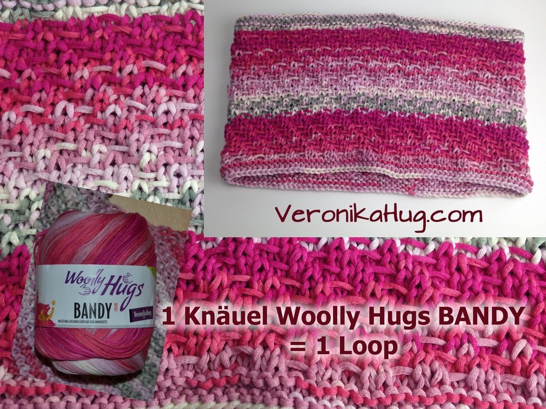 Hinweis: Die Qualität „Woolly Hugs BANDY“ ist ein Bändchengarn, das sehr weit läuft! Wer die Qualität austauscht sollte unbedingt auf gleiche Eigenschaften achten, da der Loop ansonsten zu schwer werden könnte und nicht so locker fällt.