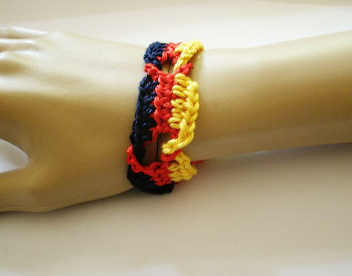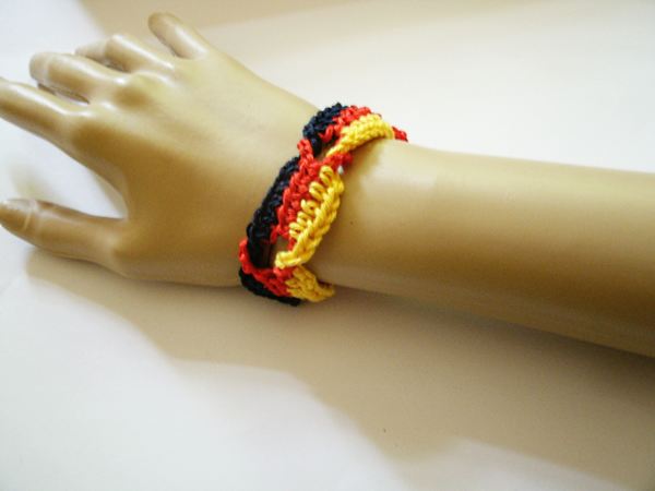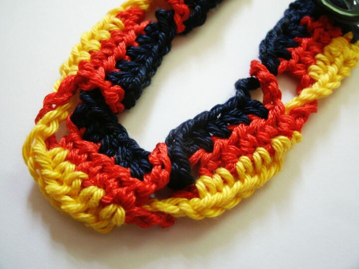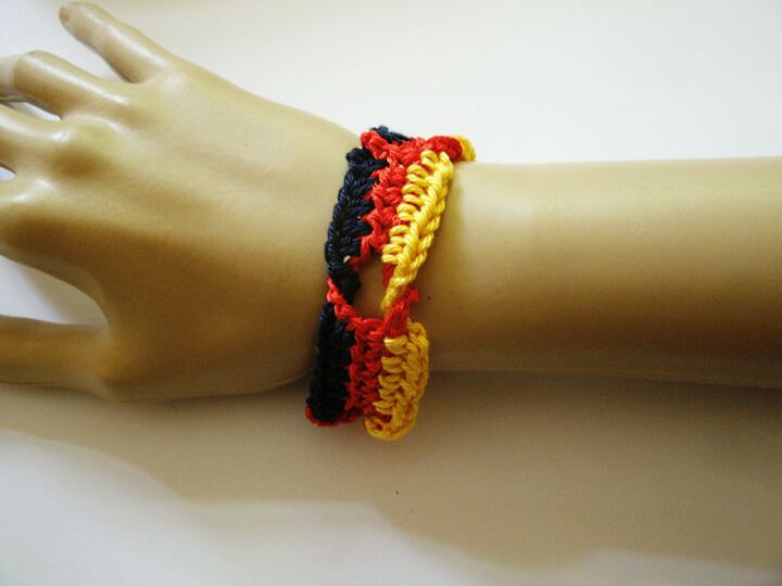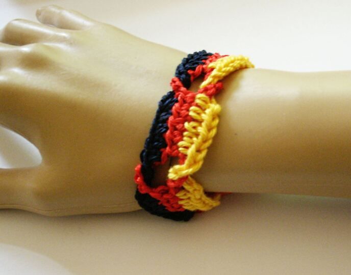 Natürlich kann das Armband auch in Vereinsfarben oder in deinen Lieblingsfarben gehäkelt werden.