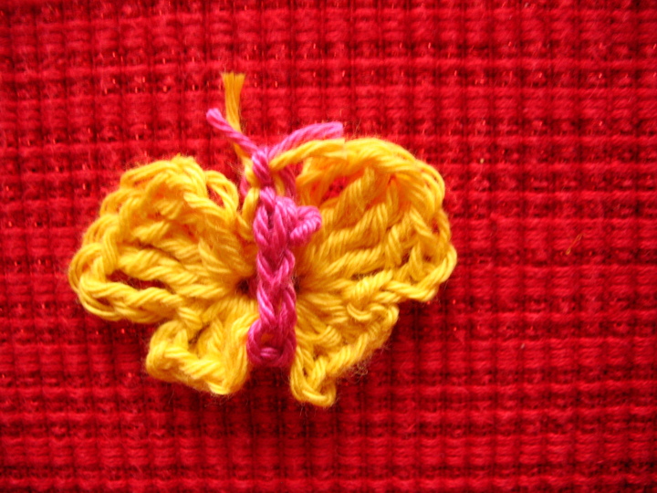 Dieser kleine Schmetterling macht aus jedem Strick- oder Häkelwerk etwas Besonderes.