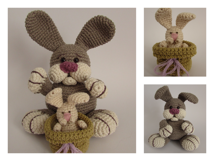 Die bebilderte Anleitung mit dem großen Hase, dem kleinen Hasen und dem Körbchen umfasst 13 Seiten und ist auch für Anfänger geeignet.