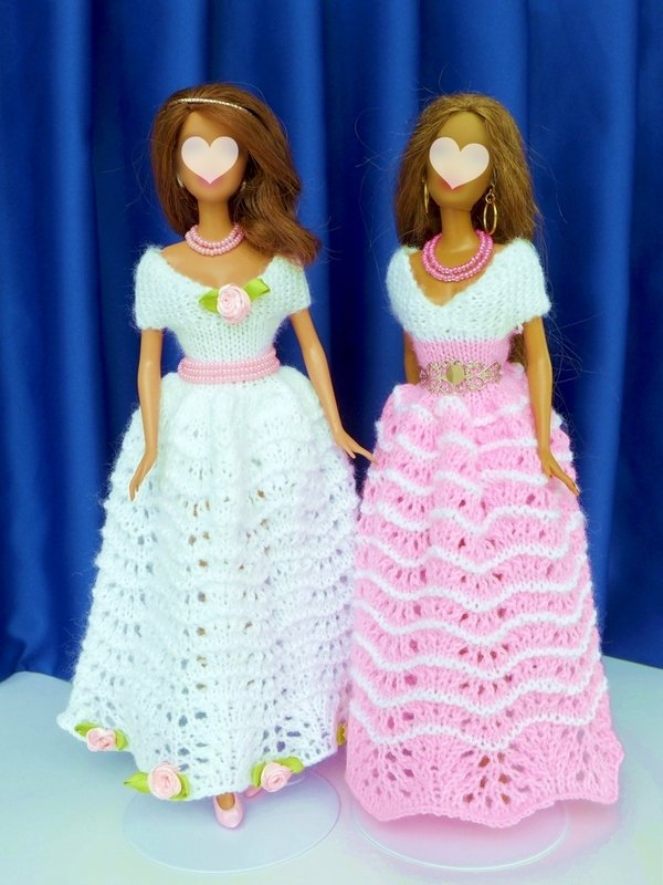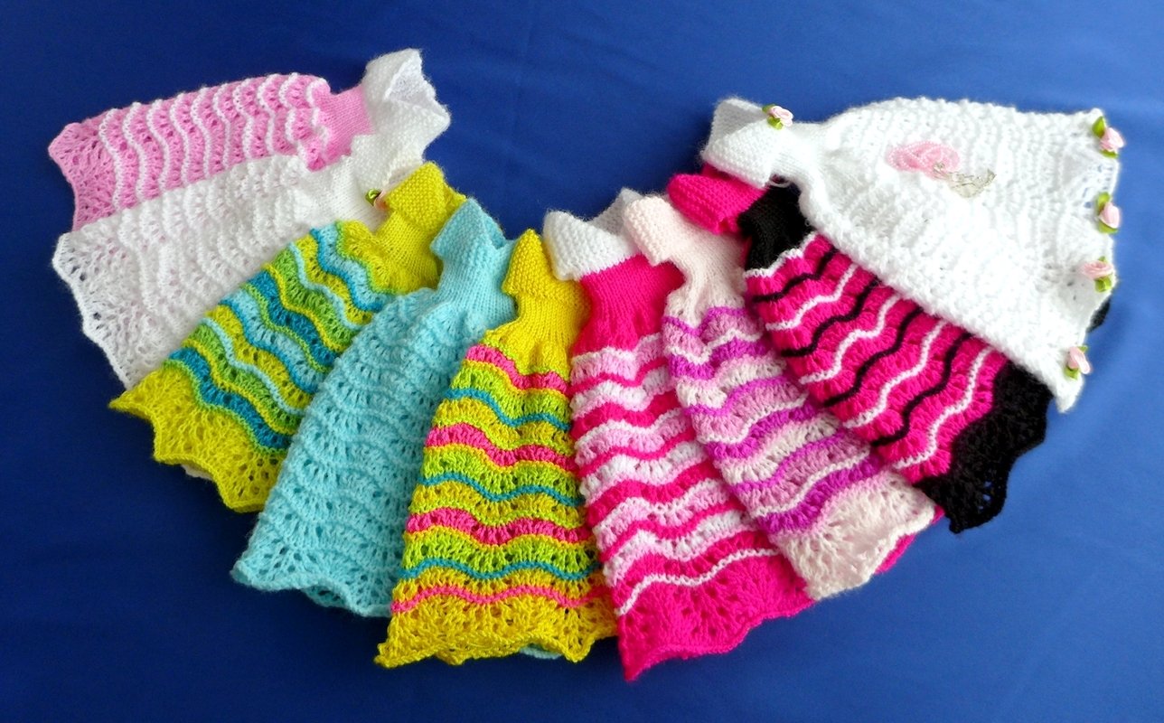 Ihr könnt die Kleider einfarbig oder mehrfarbig stricken. Schaut Euch gern meine Beispiele an. Beim individuellen Schmücken und Verzieren des Kleides sind Euch keine Grenzen gesetzt. Die Anleitung ist auch für Strickanfänger geeignet, wenn sie mit einem Nadelspiel stricken können oder es lernen möchten. Ich erkläre und zeige alles ganz genau Schritt für Schritt.