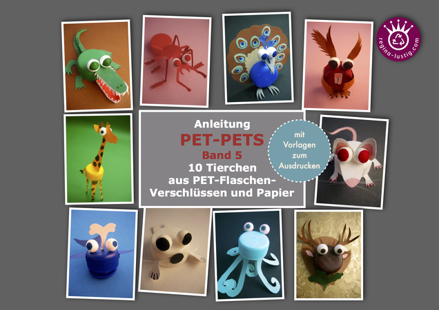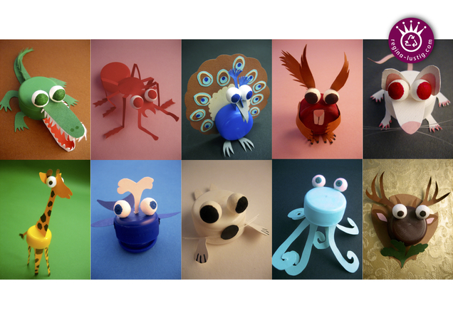 die Tierchen aus Verschlüssen von PET-Flaschen-Verschlüssen und Papier