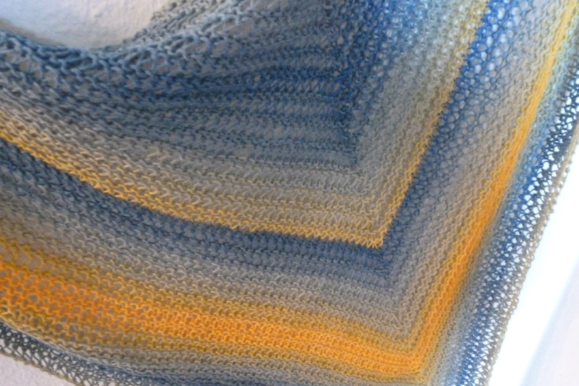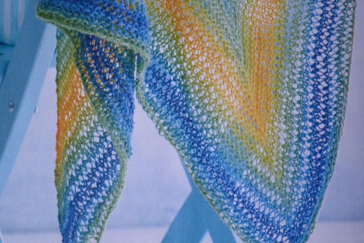 dies ist ein ganz einfach zu strickendes "Dreiecktuch in Sommerfarben mit Fallmaschen"
