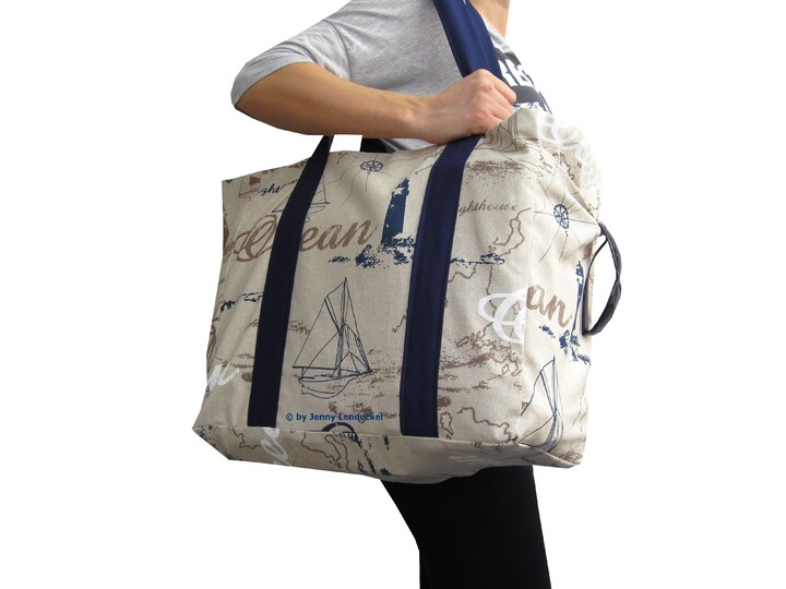 Diese XXL-Strandtasche ist 45cm breit, 40cm hoch und 25cm tief.