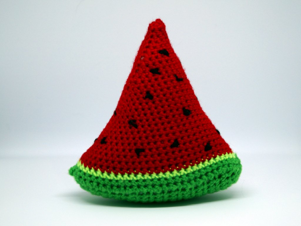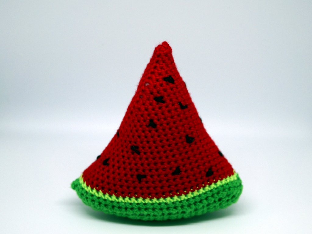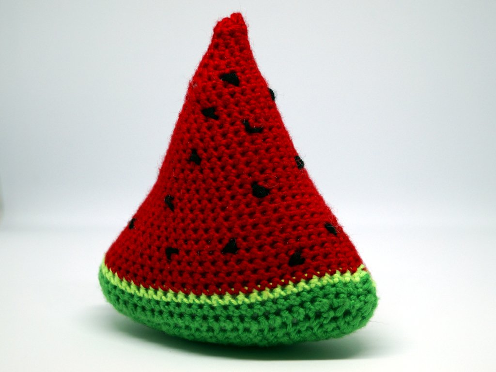 Diese Melone bzw. dieses Melonenstück ist ein super Kaufladenzubehör für Kinder. Auch als Dekoration ist es ein super Hingucker.