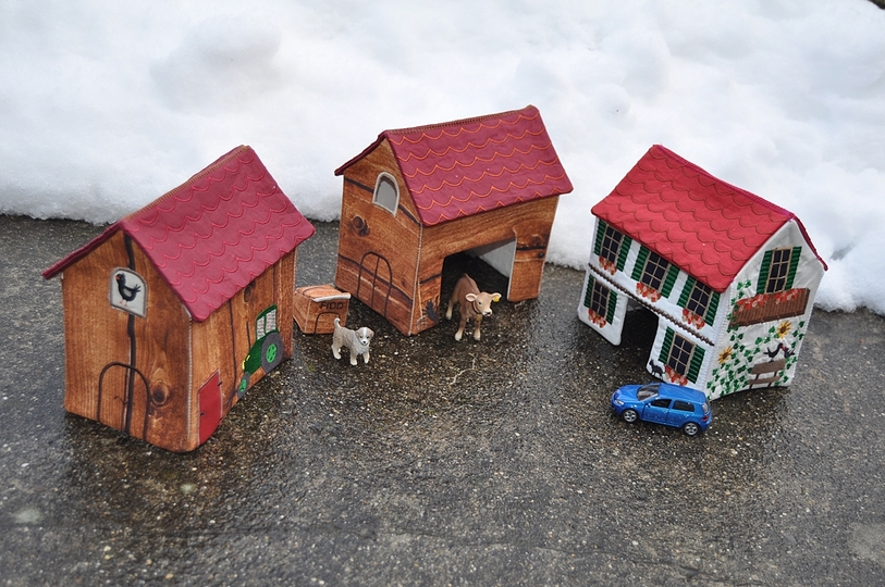 Fertige Grösse Bauernhaus und Scheune: 15 x 10 cm und 15 cm, hoch