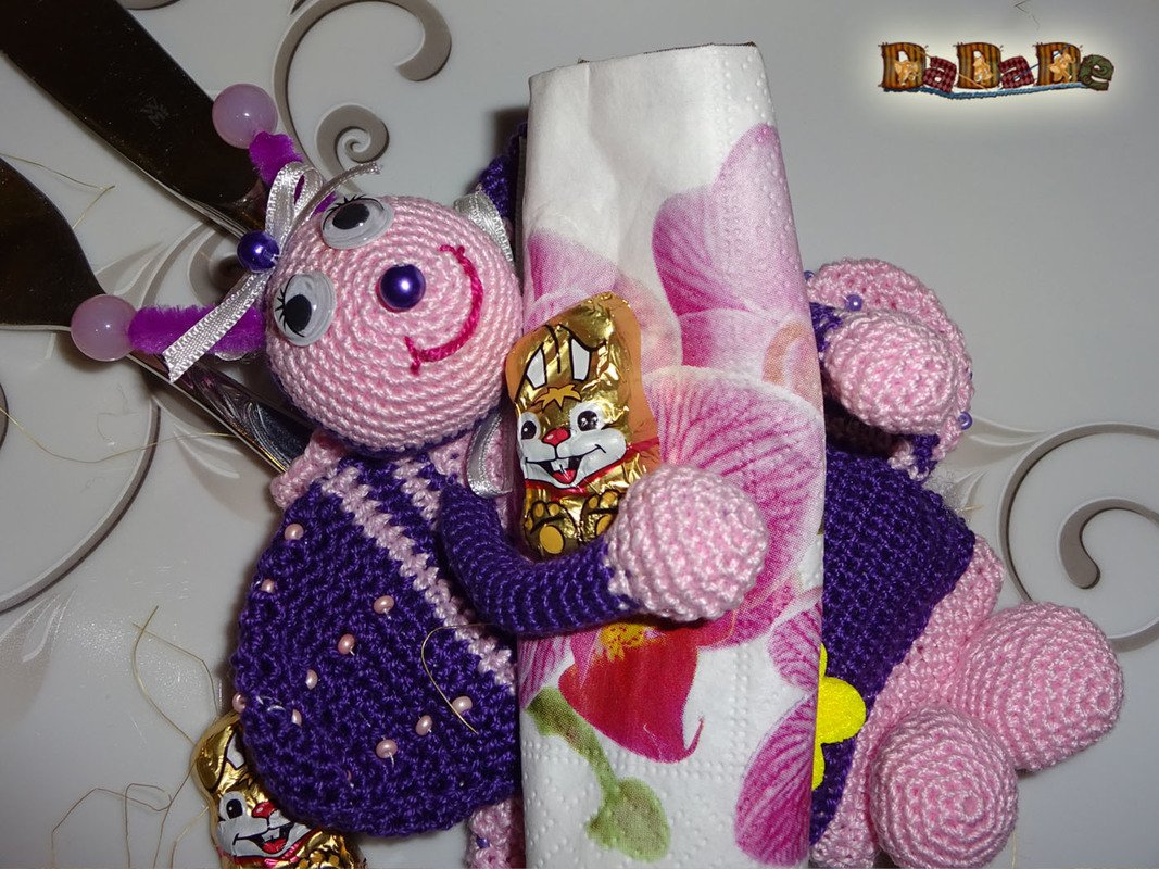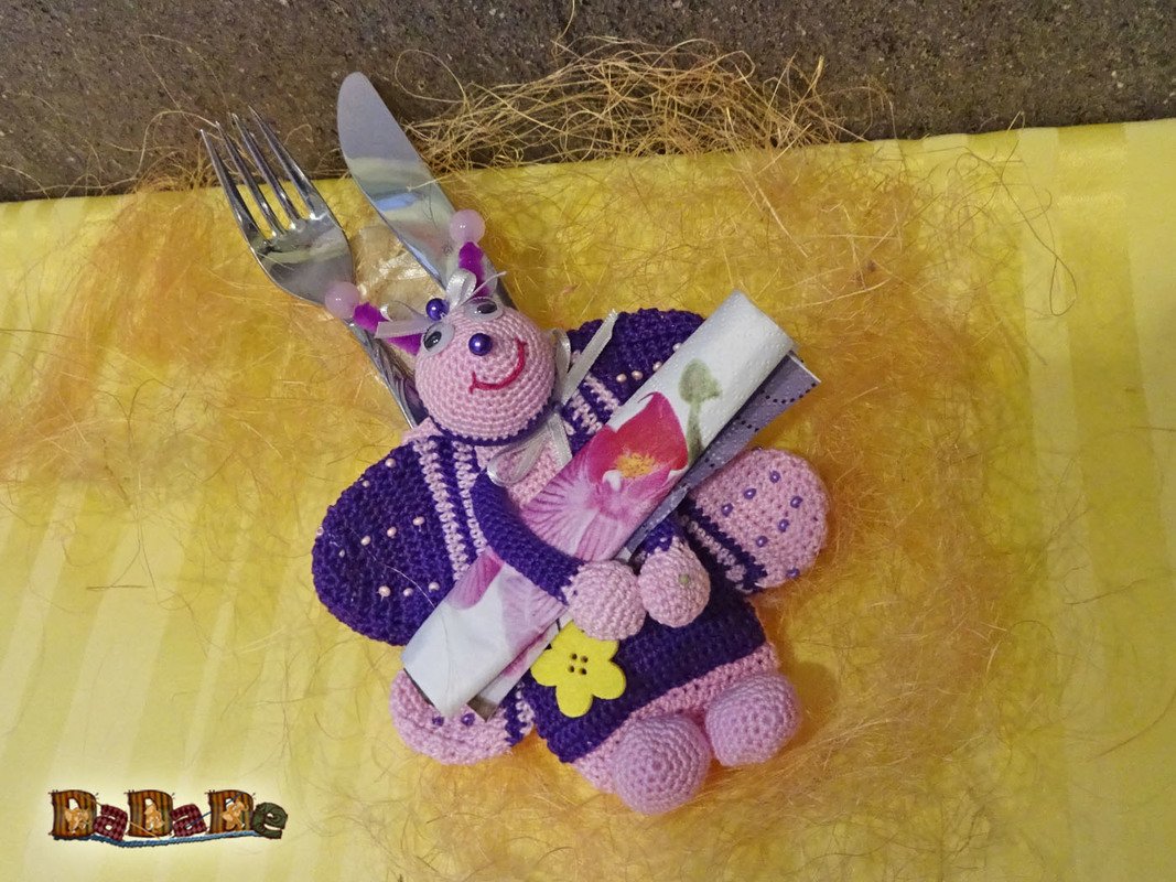 zu der Bestecktasche gibt es auch noch einen Eierwärmer und den Serviettenhalter,