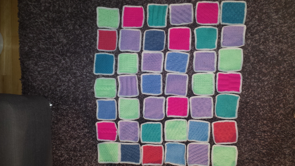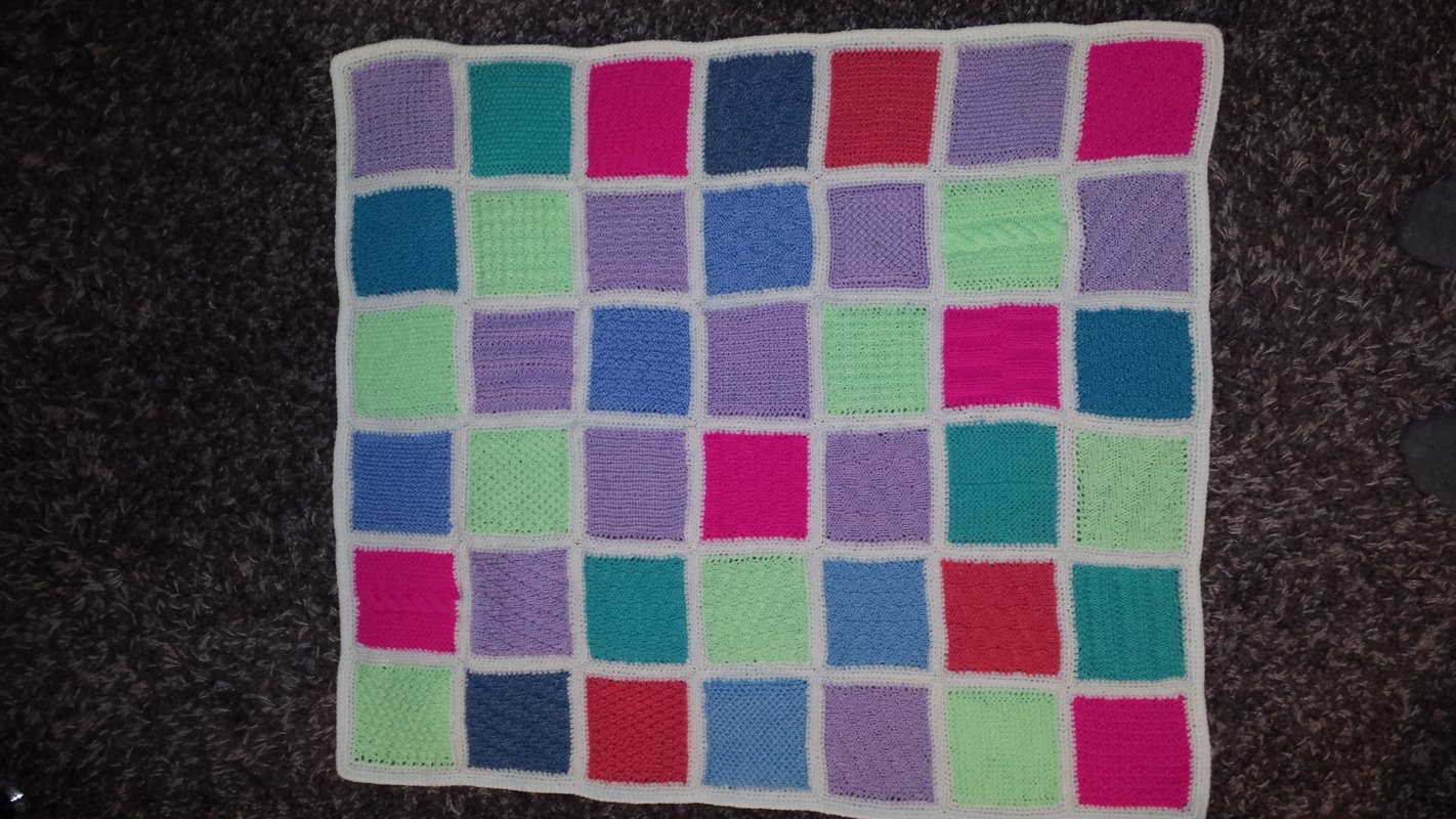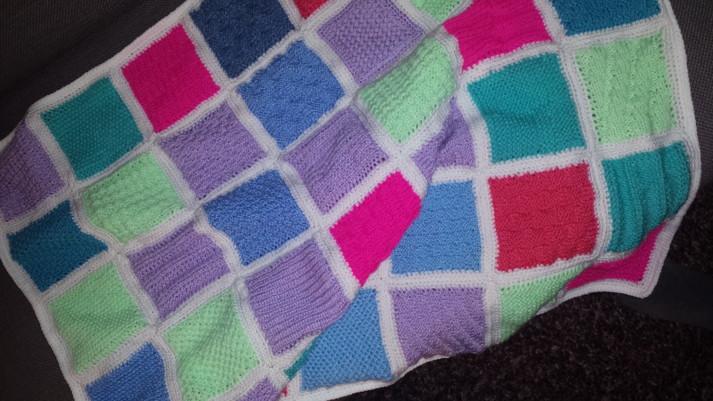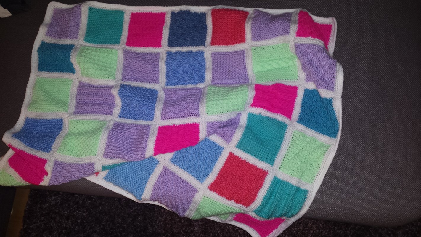 kuschelige, weiche Baby-Decke in der Größe 70x82 cm, ich habe hier Wollreste verwertet,