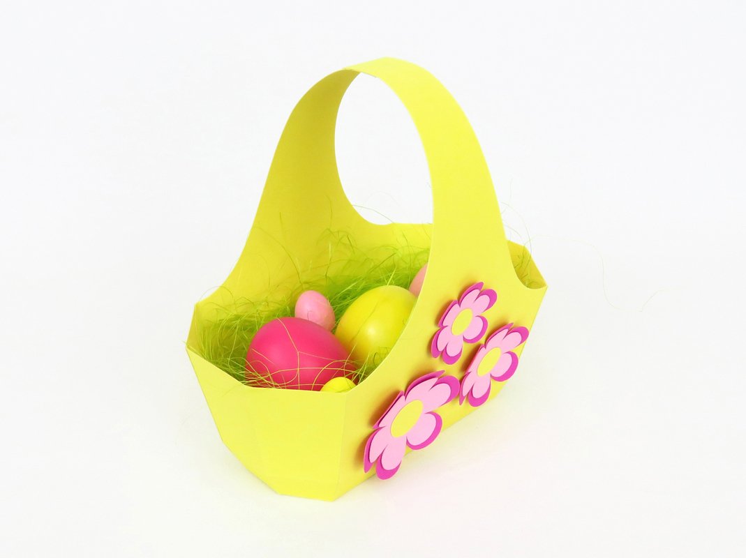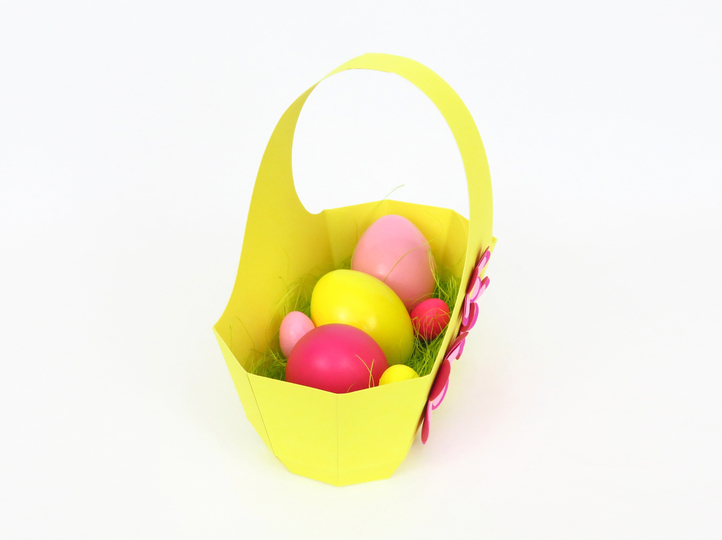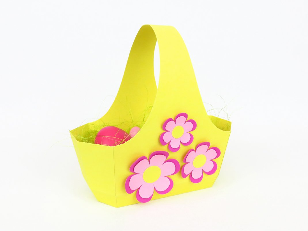 In dieses niedliche Körbchen kannst Du gleich Deine ganze Osterbrunch-Mitbringsel einpacken – es gibt hier genug Platz für bunte Ostereier, Süßigkeiten und sogar ein kleines Spielzeug.