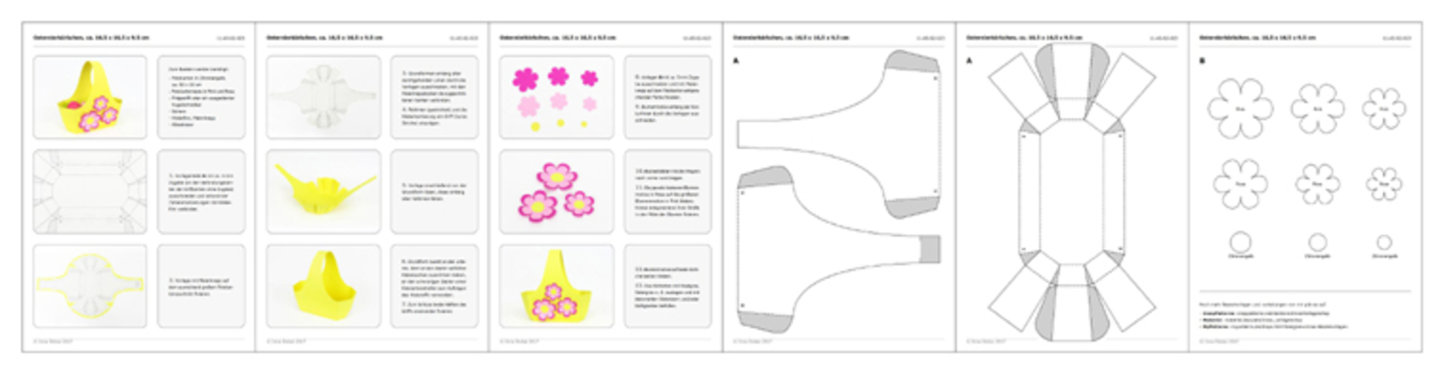 Das Körbchen ist aus Fotokarton gefertigt, ca. 16,5 x 16,5 X 9,5 cm groß und leicht nachzubasteln.