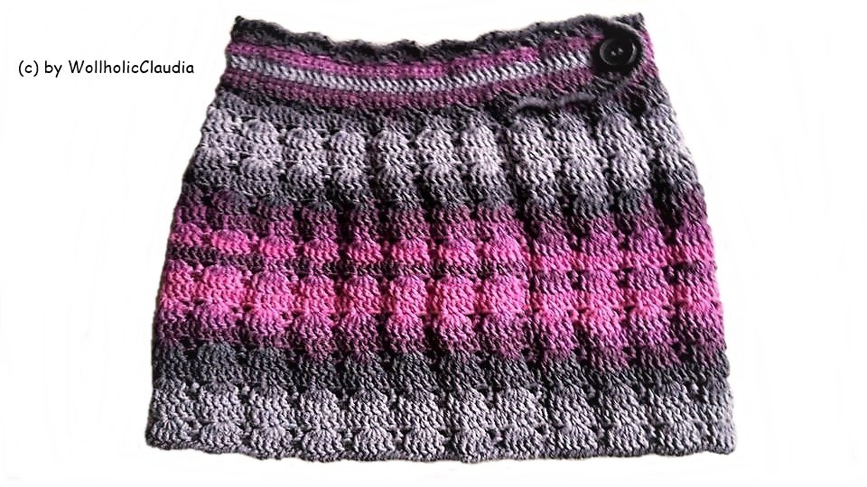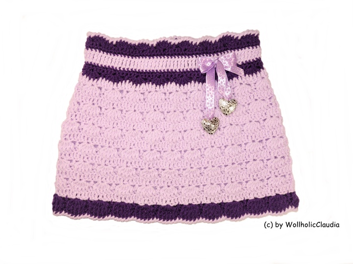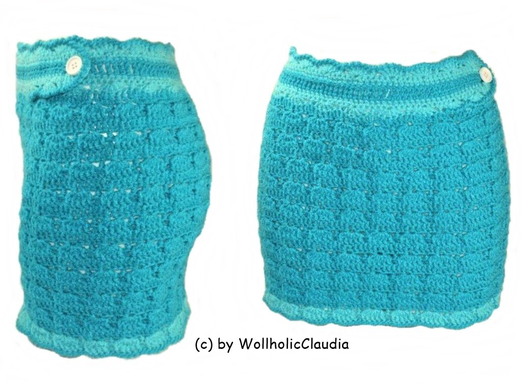 Dieser hübsche Rock kann, je nach verwendeter Woll- und Nadelstärke, sowohl im Sommer- als auch im Winter getragen werden. Er kann nach dieser Anleitung in allen Größen angefertigt werden. Diese Anleitung ist nicht anfängergeeignet!