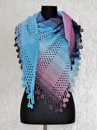 Tausendschön ist ein herrlich großer, wunderschöner Wrap. Wegen seiner leicht asymmetrischen Form kann er auf vielfältige Weise getragen werden. Kleine Blümchen, die dem Schal auch seinen Namen gaben, werden gleich mit angehäkelt und sind das Highlight!