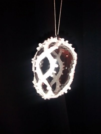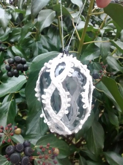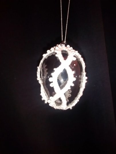Die Anleitung ist für eine Spitze in Kreuzform, die um eine Ei mit Abmessung von ca. 7 cmx5cm genäht wird.