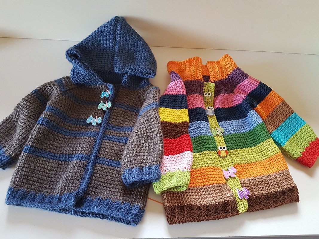 Häkeljacken in tunesischen Grundmuster ALLE Größen ausführlich erklärt mit vielen Bildern und Zeichnung.