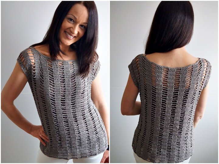 Mit Hilfe dieser Anleitung können Sie eine hübsche Tunika/Top (jede Größe) für Sommer häkeln. Diese Tunika/Top ist schick und passt zu vielen Outfits.
