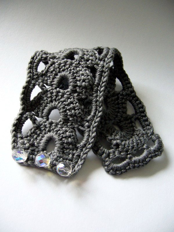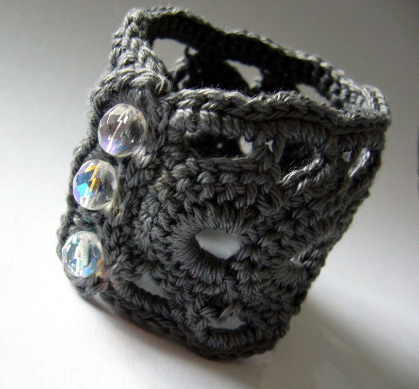 Reich bebilderte Häkelanleitung zur Erstellung eines Armbandes wie abgebildet.