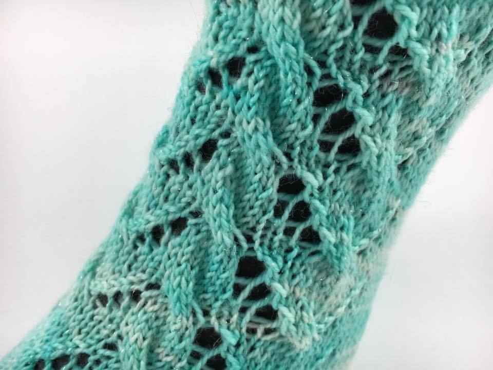 Ich bin auf den Namen gekommen, durch das Garn, es hat einen leichten Glitzer Faden. Dazu das schöne Türkis (Gibt es übrigens bei mir zu Kaufen) Das Stricken hat viel Spaß gemacht, das Muster ist nicht soooo schwer und prägt sich leicht ein.