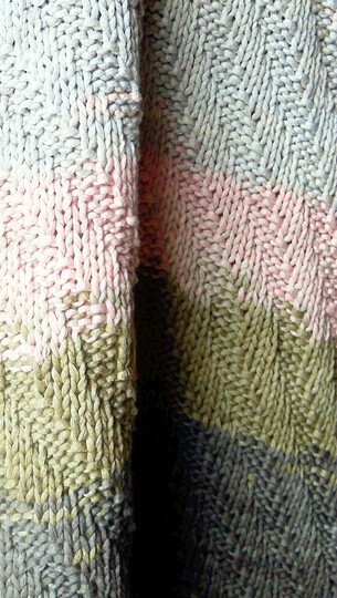 A rectangle stole that happens to be made out of a yarn called Primavera. It seemed a good name while I worked on it during the coldest month of the year. Spring is always something to look forward to.
