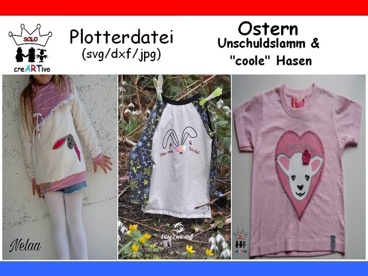 Mit den Motiven aus der Serie kannst du Kleidungsstücke beplotten für coole Hasen und Unschuldslämmer, sowie Osterdekorationen erstellen. Deiner Kreativität sind keine Grenzen gesetzt.