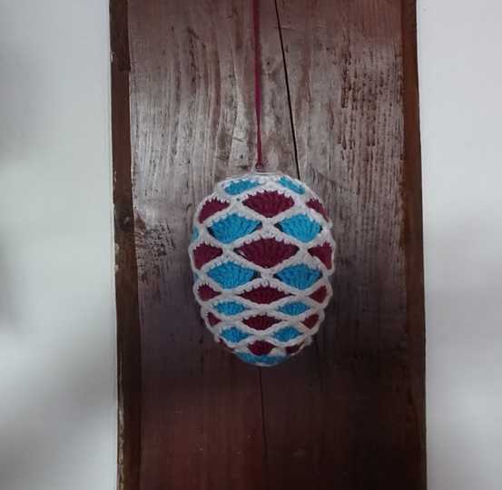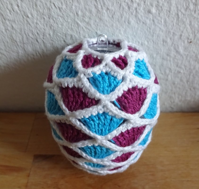 Hier ist mein gehäkeltes Osterei in starken Farben.