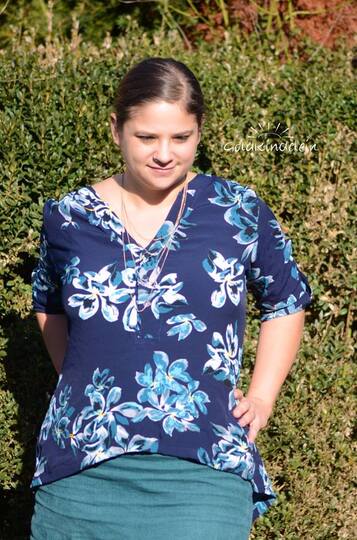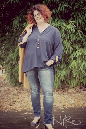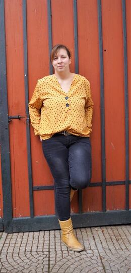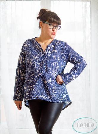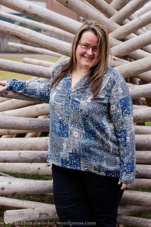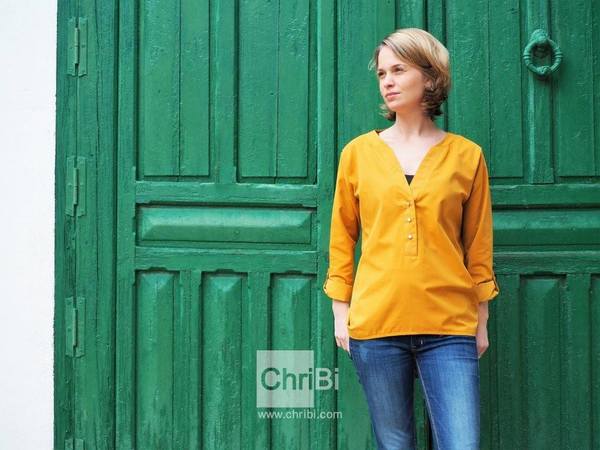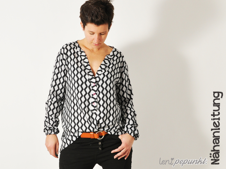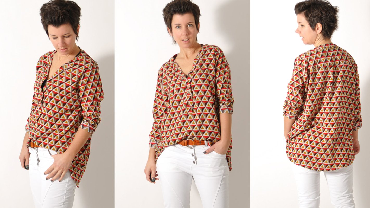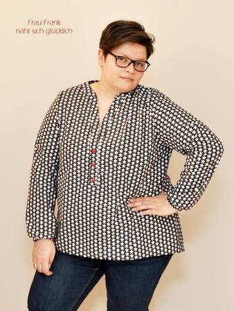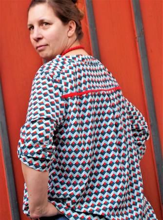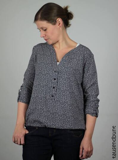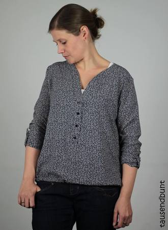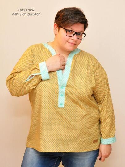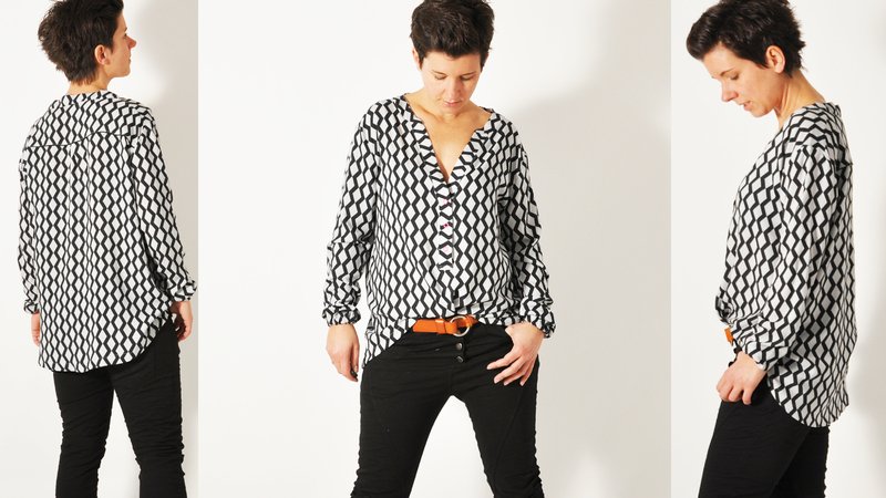 Die JUBAH.bluse ist weit geschnitten, sodass sie eventuelle Problemzönchen geschickt kaschiert. Endlich mal ein Schnitt, der ausschließlich für Webware konzipiert ist!