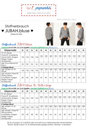 Wie bei allen “leni pepunkt.” Damen Schnitten sind auch hier alle (Einzel-)Größen von 32-58 beinhaltet!