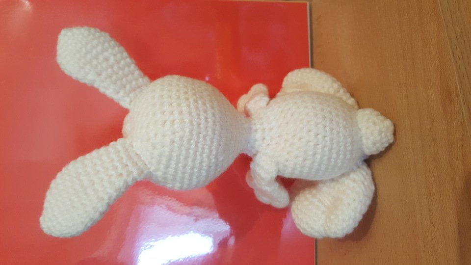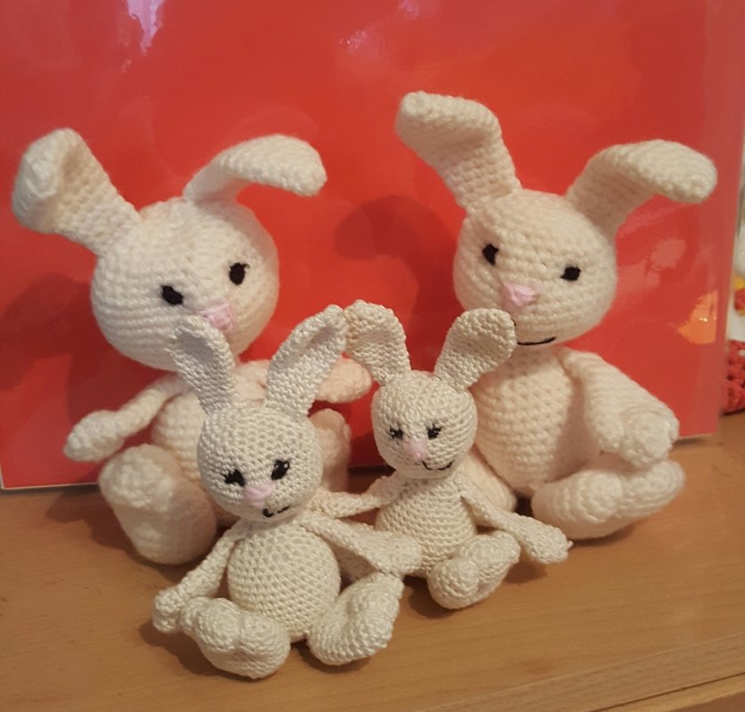 Dieser Hasi ist von mir Erstellt und in eine Pdf datei von mir auf 4 DinA4 Seiten zusammengefasst. Die Anleitung ist einfach und gut beschrieben Geschrieben, so das ein Anfänger der die Grundkenntnisse : Anfangsring, feste Maschen, ab und Zunahmen, sowie das Abmaschen beherrst leit nach arbeiten kann.
