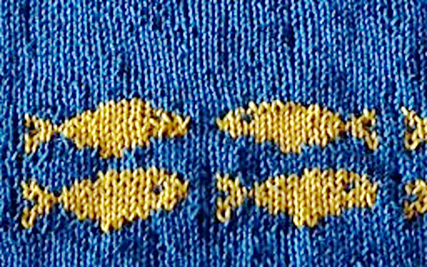 Garn: Steinbach Capri (100% Baumwolle, 125m/50g); 1 Knäuel in Farbe A (blau), 1 Knäuel in Farbe B (gelb). Verbrauch für das Beispiel: 125m in Blau und 53m in Gelb.