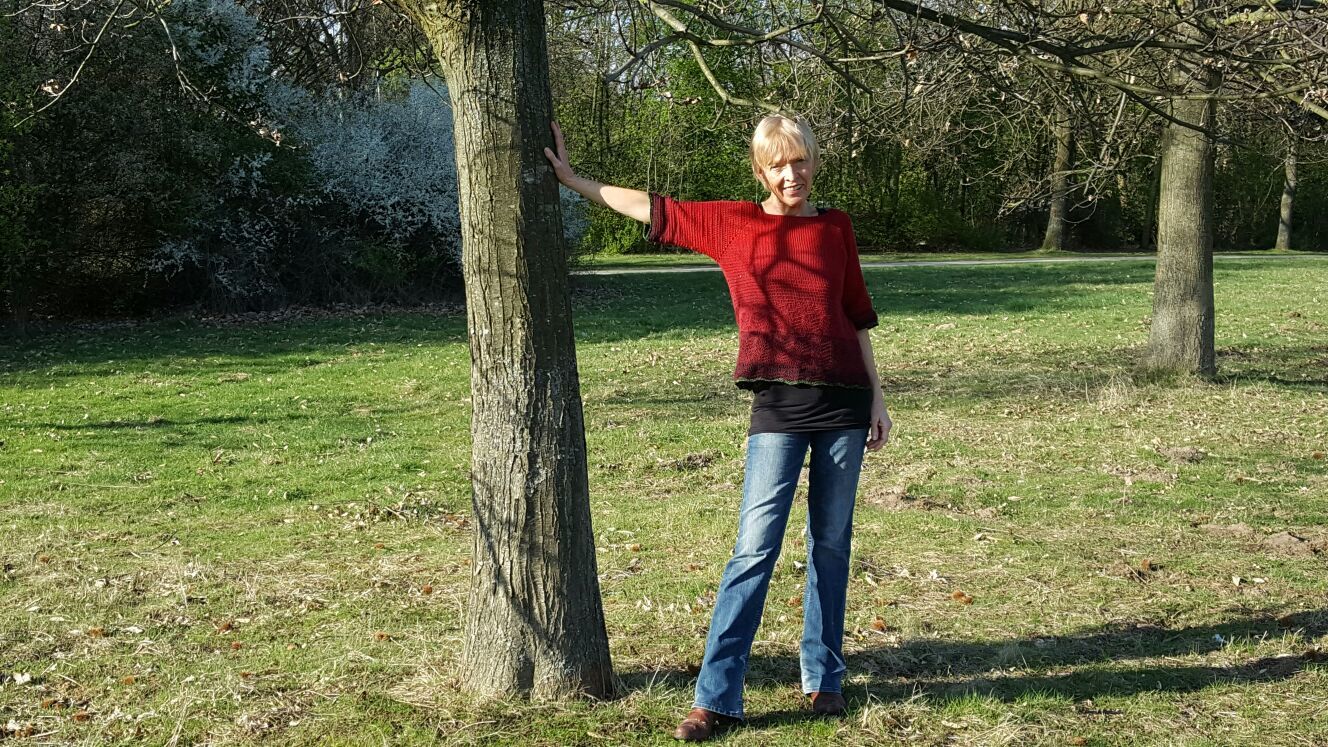 Meinen Pullover habe ich in Größe M gearbeitet und etwas kürzer gehalten.