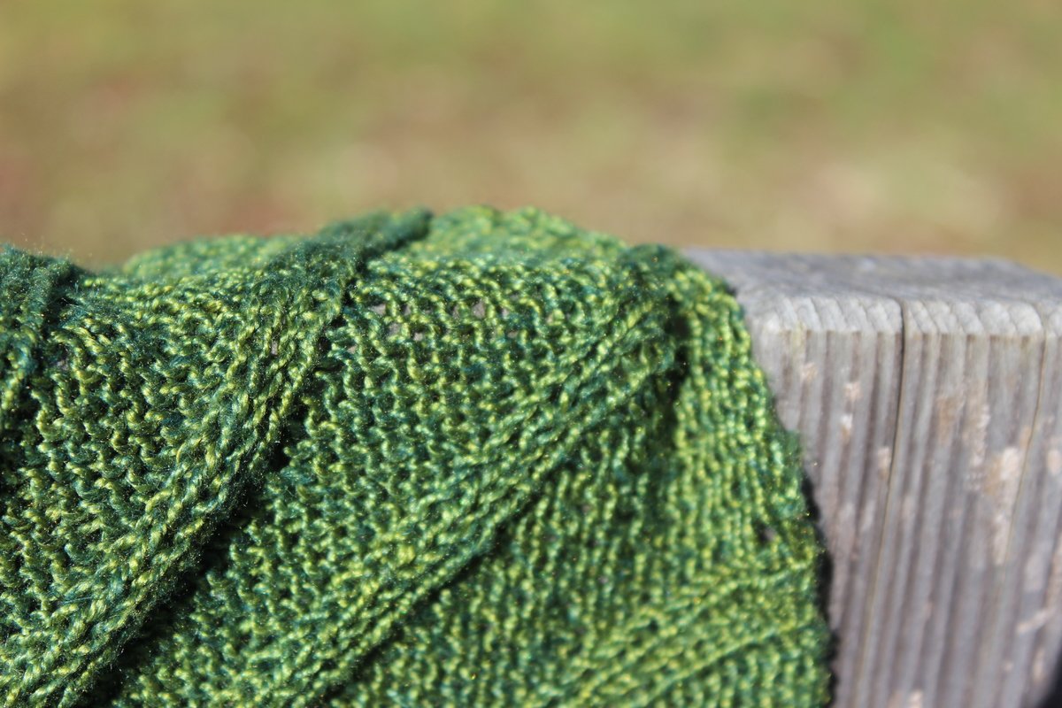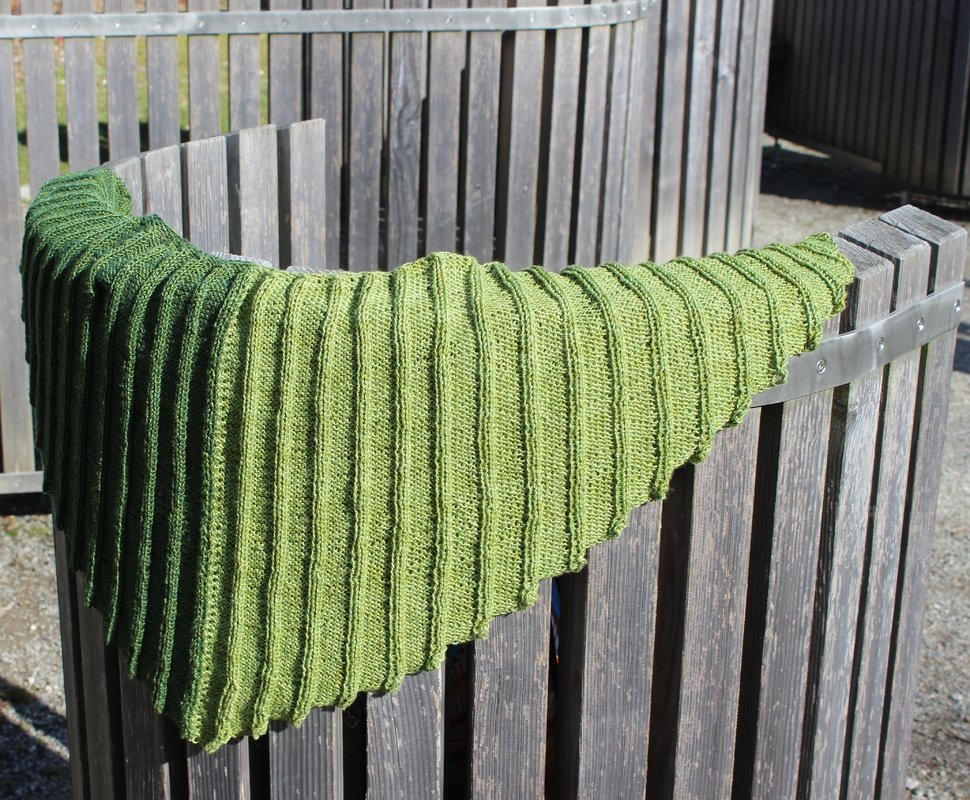 Das Tuch wird treppenförmig von unten nach oben gestrickt und erhält seine Form durch Zunahmen an den Seiten und Abnahmen am oberen Rand. Das Muster, mit rechten und linken Maschen, erinnert mich an ein Akkordeon, daher auch der Name für das Tuch.
