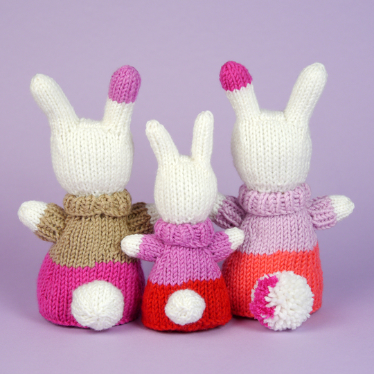 Die Anleitung ist sehr ausführlich, damit die Häschen auch Anfängerinnen gut gelingen. Die Häschen sind ein gutes Übungsprojekt für das Stricken in Runden und einige Ab- und Zunahmetechniken. Die 3-Nadel-Technik wird ausführlich und mit vielen Bildern im Technik-Anhang erklärt. Aber natürlich macht die Hasenbande auch versierten Strickerinnen als kleines Nebenbei-Projekt viel Spaß!