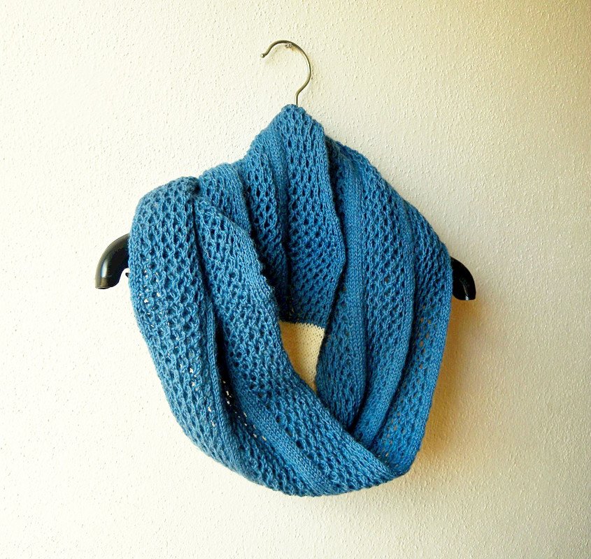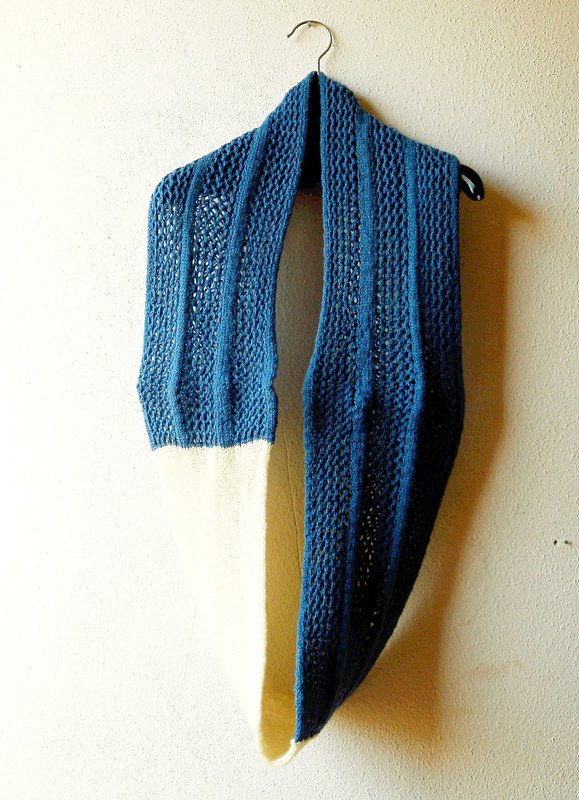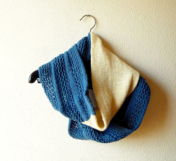 The cowl is a long tube that is worked in fingering weight yarn. It is a lightweight accessory that takes some time to knit, but will feel heavenly soft around your neck. There are no special difficulties hidden in the pattern, it is a very relaxing knit. Use one color, use two colors, knit to any desired length, do as you please.