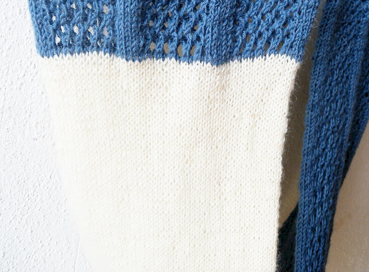 Difficulty level: easy (working in the round on circular needles, mesh)