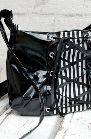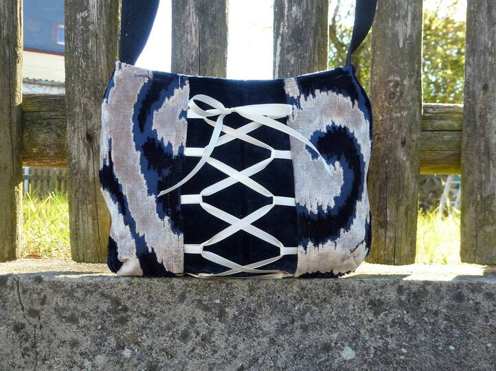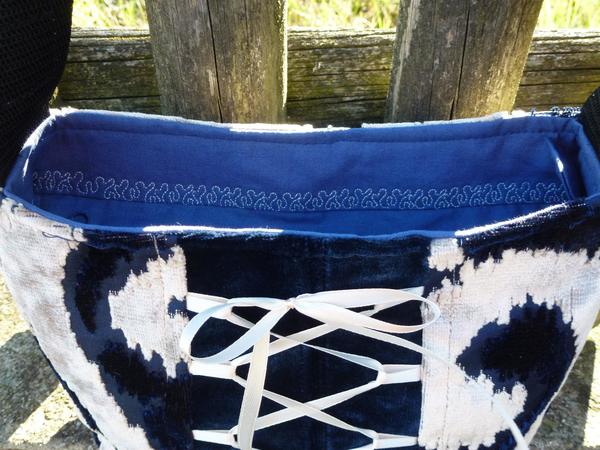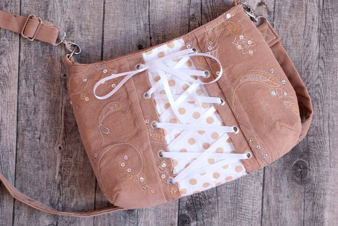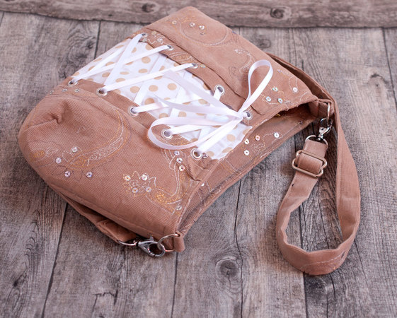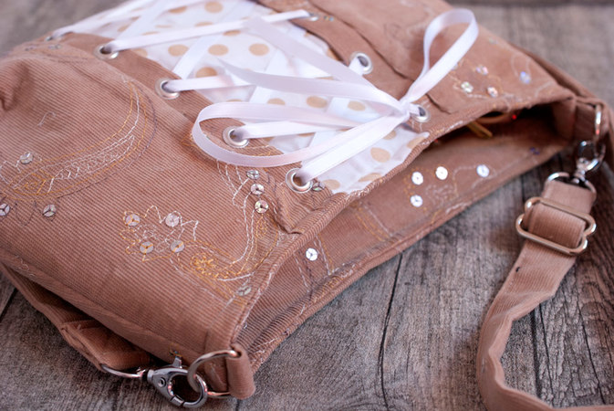 Durch ihre Schnürung vorn wird roXXanne zum Blickfang. Während eines intensiven Probenähens wurden viele Varianten, Material und Stile ausprobiert. Du kannst die Tasche sexy, verspielt oder romantisch nähen: Ob mit oder ohne Schnürung - Du kannst geliebte Stoffreste oder auch schöne Stickereien in Szene setzen.