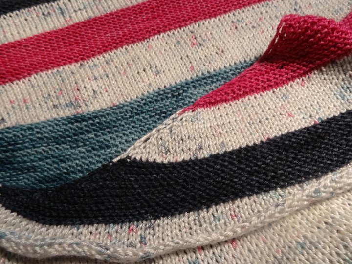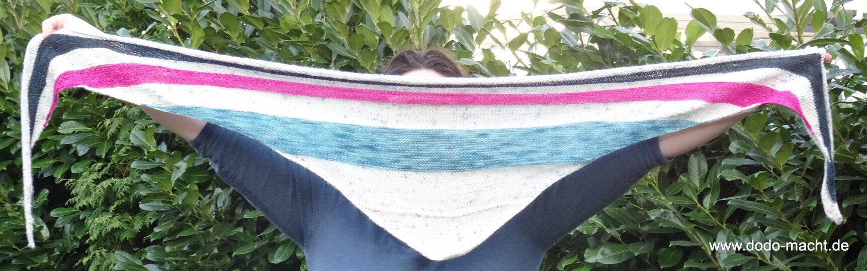 Hier wird ein wunderschön gesprenkelter Strang mit korrespondierenden Unifarben vereint. Es ist ein schöner, farbenfroher Schalersatz der schnell gestrickt ist und aufgrund der wenigen verschiedenen Maschenarten auch wunderbar abends vorm Fernseher gestrickt werden kann.