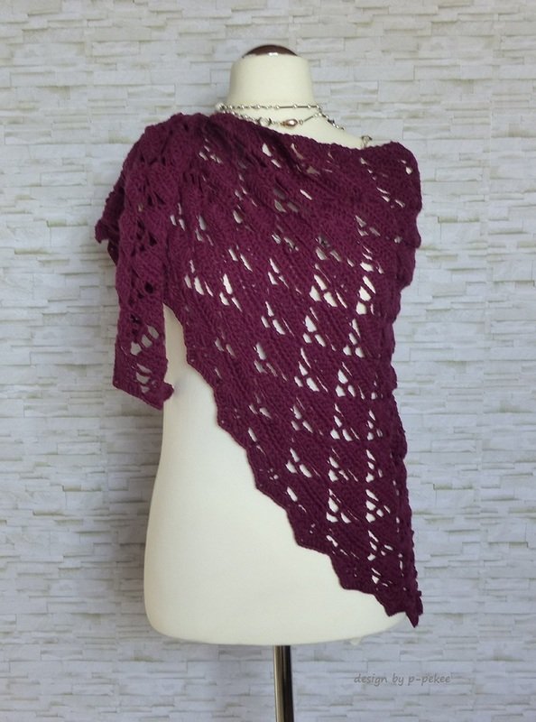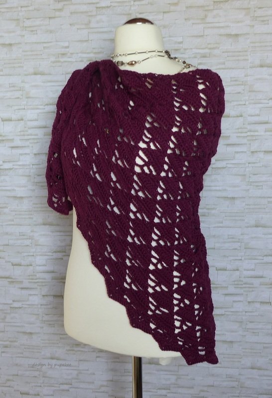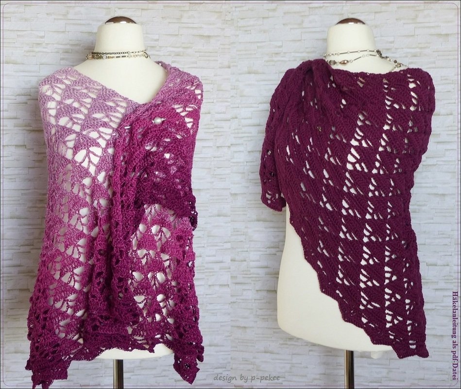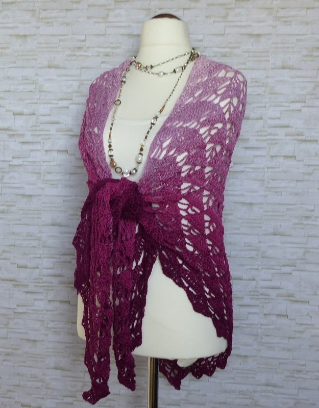 "Sweet Kiss" ist ein luftiges sommerliches Häkeltuch / Stola. Das Muster ist sehr leicht zu häkeln, ist schön luftig und daher ideal für den Sommer. Natürlich kann das Tuch auch mit dickerer Wolle gehäkelt werden und ist somit ein Übergangs/Wintertuch.