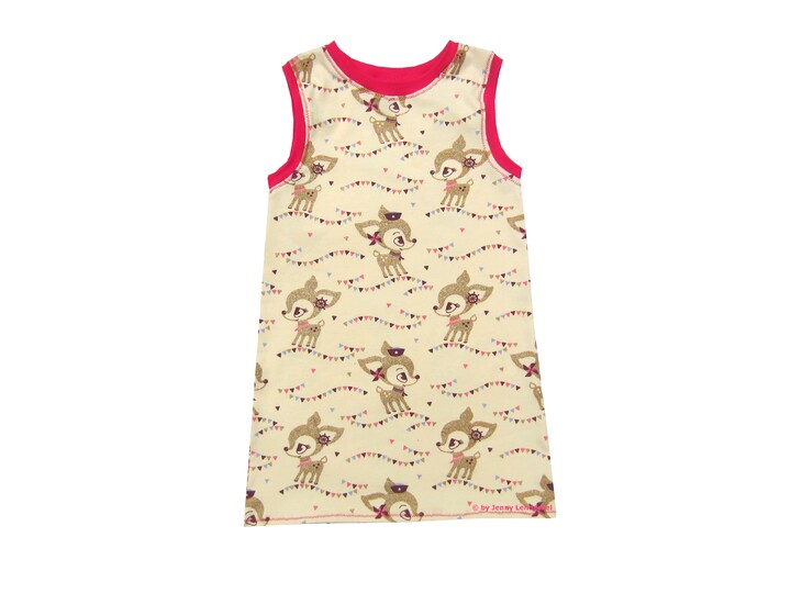 Dieses einfache Kinderkleid sieht super süß aus zu Leggins oder Strumphose. Reinschlüpfen und raus die Sonne genießen.
