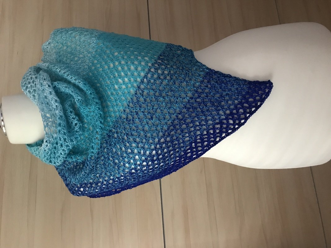 Es wird von rechts nach links gestrickt, dadurch entsteht das asymetrische Farbverlaufsmuster.