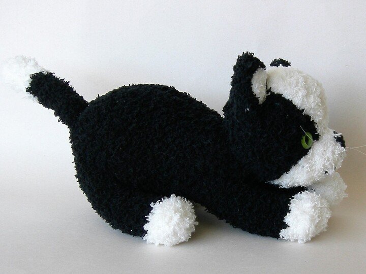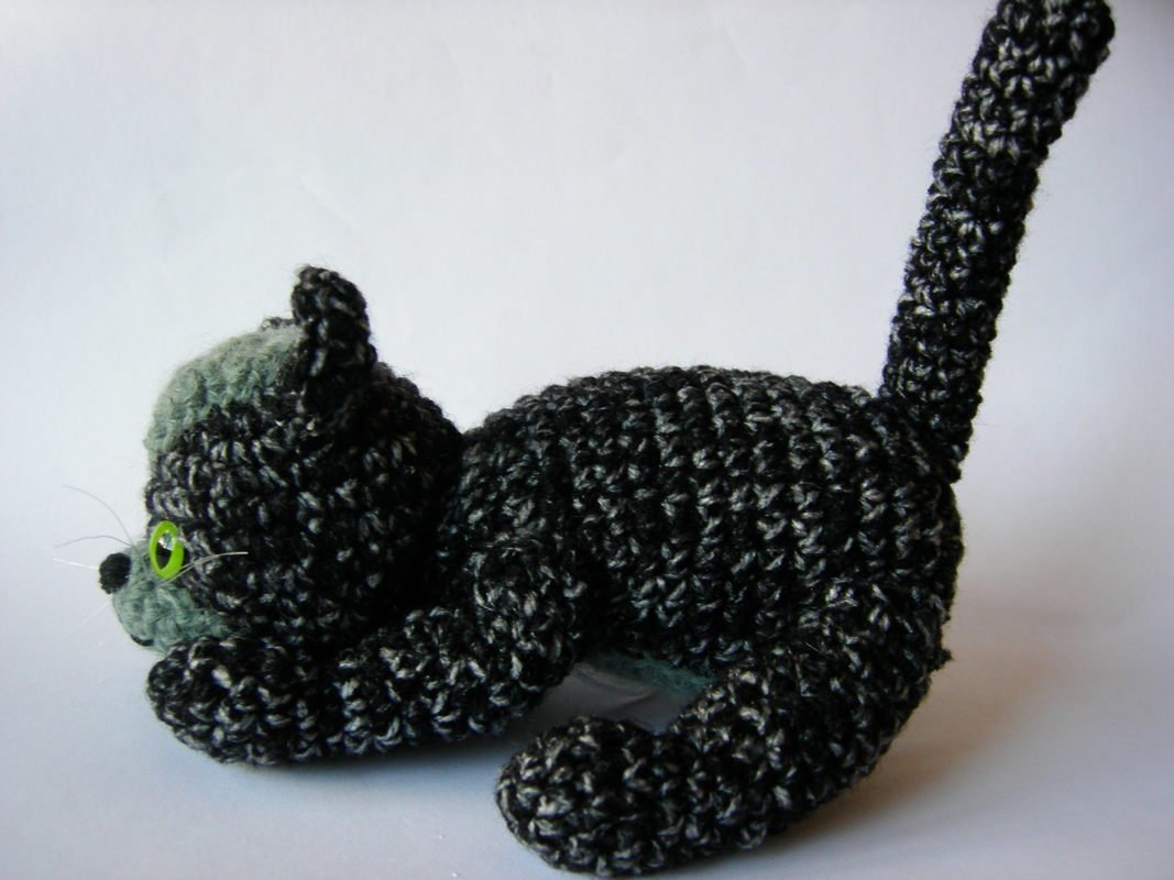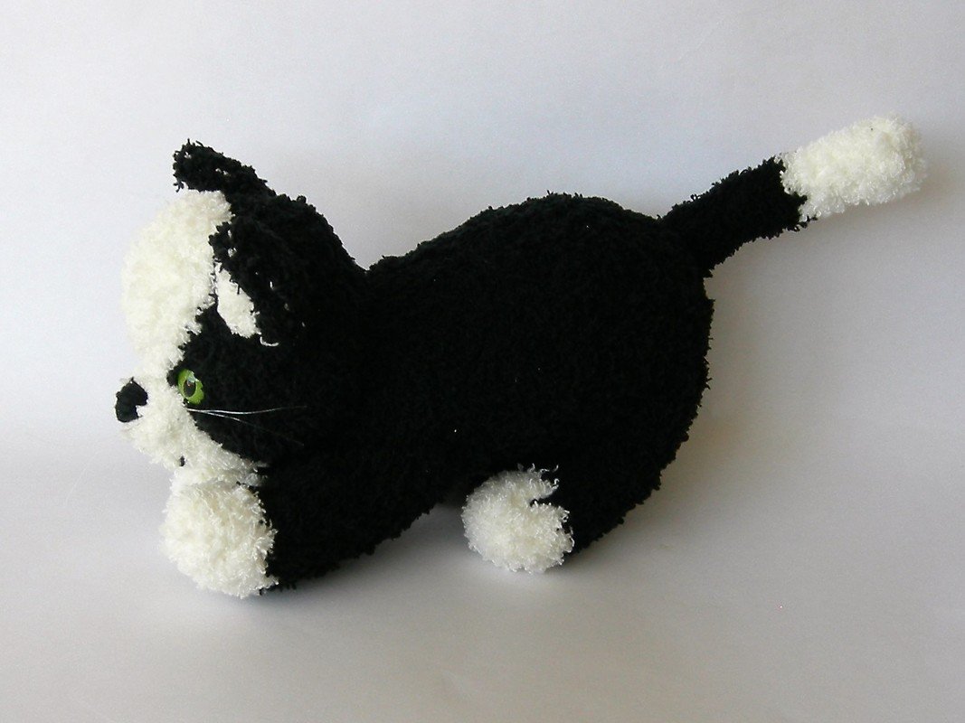 Dieses süße, kuschelige Kätzchen wird aus Flauschwolle gehäkelt und ist etwa 20 cm groß. Die Größe hängt auch von der Dicke der verwendeten Wolle ab. Du kannst natürlich auch jede andere Wolle verwenden. Den Plüscheffekt bekommst du aber nur mit der Flauschwolle.