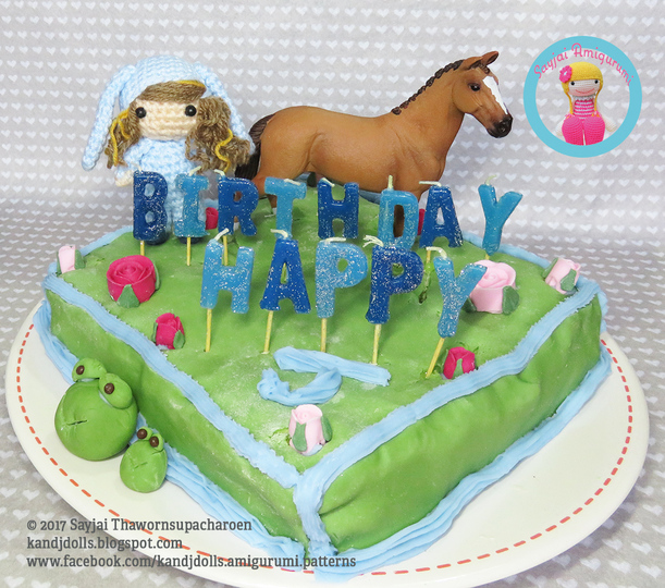 Meine Tochter machte ihren eigenen Geburtstagskuchen letzten Monat. Für die Partytaschen habe ich diese kleinen Puppen gemacht. Die blaue Mädchenpuppe steht auf dem Kuchen.
