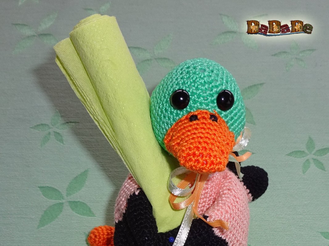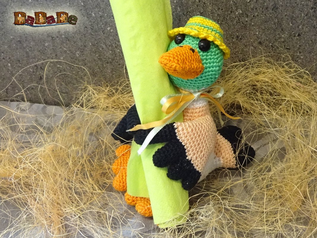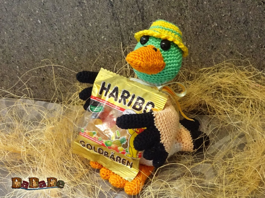 Die Ente kann auch ein kleines Geschenk festhalten.
